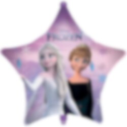 Schöner sternförmiger Folienballon in rosa Farben mit doppelseitigem Motiv der Schwestern Anna und Elsa aus Disneys fantastischem Film Frost. Perfekt zum Aufblasen und Dekorieren auf Ihrer Kinderparty.