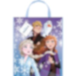 Geschenktüte in schönen Farben mit Motiven von Anna, Elsa, Kristoffer und Olaf aus dem Film Frozen 2. Legen Sie das Geschenk in diese Tüte, wenn eine Kinderparty mit Frozen-Thema ansteht. Die Tüte besteht aus Kunststoff und ist etwa 33 x 28 cm groß.