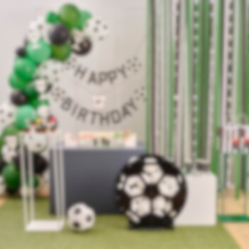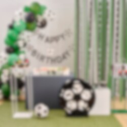 Coole Ballongirlande im Fußballthema, die man selbst zusammenbaut. Eine wirklich beeindruckende Dekoration, die gut zu Fußballpartys und Fußballfesten passt. Die Verpackung enthält 55 Ballons in verschiedenen Größen und Farben sowie Zubehör. Die Ballongirlande ist etwa 3 Meter lang.