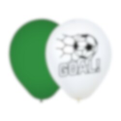 Schaffen Sie die richtige Atmosphäre für die Fußball-Geburtstagsfeier mit diesen festlichen Luftballons in Grün und Weiß. Der weiße Ballon ist mit einem klaren Fußballmotiv und dem Text GOAL! dekoriert, während der grüne Ballon einen schönen und passenden Kontrast bildet, der an den Fußballplatz erinnert.