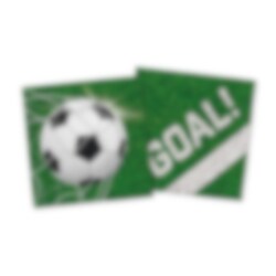 Machen Sie Ihre Tischdekoration besonders festlich mit diesen Servietten im Fußball-Motiv. Der grüne Hintergrund, der Fußball und der Text GOAL! verleihen ein verspieltes und sportliches Gefühl, das perfekt zu Fußball-Geburtstagen, Fußballpartys und Geburtstagen mit Sportthema passt.