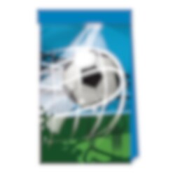 4 Geschenktüten aus Papier mit Fußball-Motto. Ideal zum Befüllen mit Süßigkeiten, kleinen Spielzeugen eller Überraschungen, die die Kinder nach der Feier mit nach Hause nehmen können.