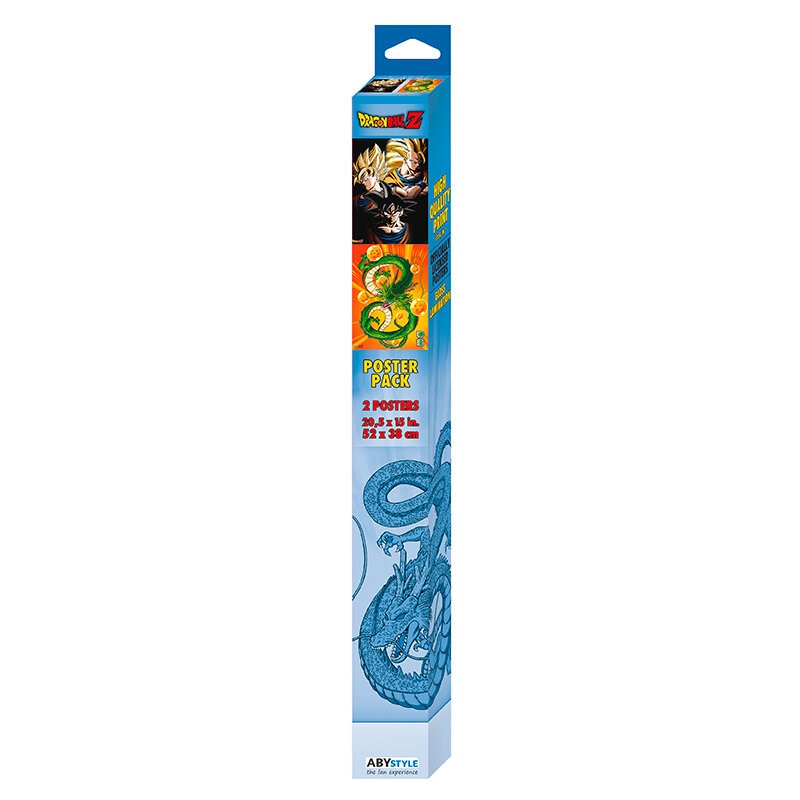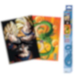 2 kleine Poster mit coolen Motiven von Goku in seinen verschiedenen Formen und dem Drachen Shenron aus Dragon Ball Z. Perfekt zum Dekorieren der Wände für einen stilvollen Effekt.