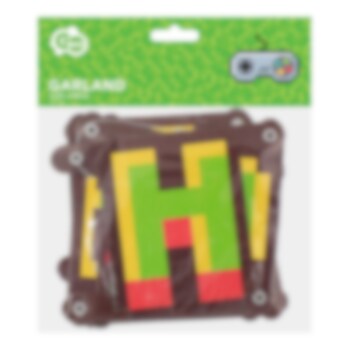 Dekorative Girlande für die Kinderparty mit Gaming-Thema. Die Girlande besteht aus Pappe, ist einseitig bedruckt und hat eine Länge von ca. 160 cm.