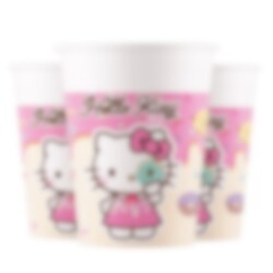 8 Pappbecher mit Motiven von Hello Kitty und Kuromi, ein süßes und verspieltes Detail das die Tischdekoration besonders festlich macht. Die pastellfarbenen Becher mit Eiscreme Motiven sind perfekt für Saft, Limonade oder andere Getränke auf der Party.