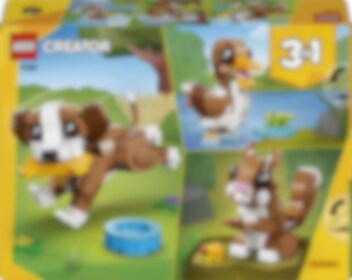 Bauen Sie einen verspielten Welpen und bauen Sie ihn dann mit denselben Steinen zu anderen niedlichen Tieren um! LEGO Creator 3-in-1 Niedliche Tiere: Verspielter Welpe (31382) ist ein charmantes Set, bei dem Sie niedliche Hundefiguren mit 336 Steinen und drei Baumöglichkeiten bauen. Ein ideales Geschenk für Hundeliebhaber und kreative Baumeister ab 8 Jahren.