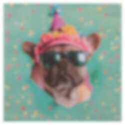 Lustige Servietten mit einem festlichen Hundemotiv, die perfekt zu Geburtstagsfeiern, Partys und anderen Feierlichkeiten passen, bei denen die Tischdekoration hervorstechen soll. Der Hund mit Sonnenbrille und Partyhut verleiht einen frechen und verspielten Ausdruck, während der farbenfrohe Konfettihintergrund das festliche Gefühl verstärkt.