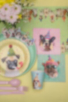 Ein lustiger Tischläufer mit festlichen Hundemotiven, der perfekt zu Geburtstagsfeiern, Partys und anderen Feierlichkeiten passt, bei denen die Tischdekoration im Mittelpunkt stehen soll. Die Hunde mit Partyhüten entlang der Ränder verleihen einen verspielten Ausdruck, während der farbenfrohe Konfettihintergrund die gesamte Tischdekoration harmonisch abrundet.