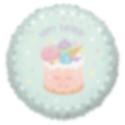 Ein farbenfroher Folienballon mit einem süßen und sommerlichen Tortenmotiv und dem Text Happy Birthday. Der Ballon hat ein selbstverschließendes Ventil und hat einen Durchmesser von 43 cm.