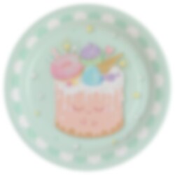 8 dekorative Teller von Crazy Cake mit Motiven einer süßen Geburtstagstorte in lebhaften Farben. Die Teller haben einen Durchmesser von 23 cm und sind aus FSC-zertifizierter Pappe hergestellt, was sie zu einer umweltfreundlichen Wahl macht. Perfekt für die Sommerparty!