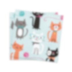 16 kleine Mintgrüne Servietten mit Motiven süßer Katzen. Pefekt für Ihre Kinderparty mit Katzen-motiven. Die Servietten hat 2-lagen und ist 25 x 25 cm entfaltet.