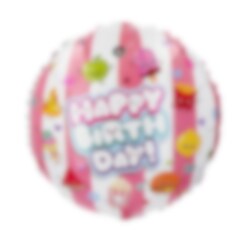 Schaffen Sie eine verspielte und farbenfrohe Partyatmosphäre mit diesem runden Folienballon im Kawaii-Design. Der Ballon trägt den Schriftzug Happy Birthday und ist mit niedlichen Illustrationen von Früchten, Snacks und Süßigkeiten verziert, was ihn zu einer charmanten Dekoration für den Kindergeburtstag macht.