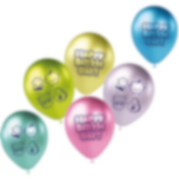 6 Luftballons im Kawaii-Design, die dem Geburtstag ein farbenfrohes und verspieltes Ambiente verleihen. Die Ballons sind in sanften Pastellfarben gehalten und haben niedliche Motive mit Happy Birthday-Text und charmanten Kawaii-Figuren, wodurch sie sich als schöne Dekoration für den Kindergeburtstag eignen.