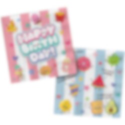 20 Servietten mit niedlichem Kawaii-Motiv, die die Tischdekoration für den Kindergeburtstag besonders farbenfroh und verspielt gestalten. Die Servietten sind mit süßen Illustrationen von Früchten, Snacks und Leckereien verziert, sowie dem Schriftzug „Happy Birthday“, was perfekt zu einer Feier im Kawaii-Thema passt.