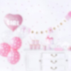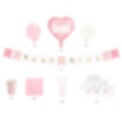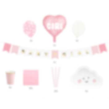 Ein romantisches Babyshower-Set in Rosa, Weiß und Gold, perfekt, um die Ankunft des kleinen Mädchens festlich zu feiern.