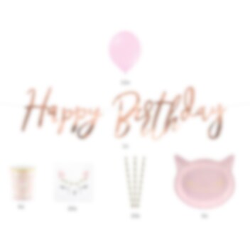 Mit diesem liebevoll gestalteten Partyset im Katzendesign wird jeder Kindergeburtstag zu einem unvergesslichen Erlebnis. Die Deko-Elemente in Rosa und Gold mit niedlichen Katzenmotiven schaffen im Handumdrehen eine fröhliche und charmante Atmosphäre.