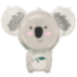 Stilvoller Folienballon mit dem Bild eines süßen Koalas, der eine passende Dekoration für Ihre Tierparty darstellt. Der Ballon ist etwa 63 x 71 cm groß und kann mit Luft (mittels einer Ballonpumpe) oder Helium gefüllt werden.