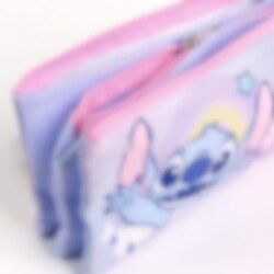 Halte Stifte, Radiergummi und Kleinkram ordentlich zusammen – mit diesem hübschen Federmäppchen mit Stitch! Dank drei separater Fächer ist genügend Platz für alles, was man in der Schule oder beim Basteln braucht. Das lilafarbene Design mit Weltraummotiv und rosafarbenem Reißverschluss macht es sowohl praktisch als auch charmant – ein Favorit bei allen Stitch-Fans!