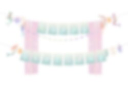 Diese märchenhafte Girlande ist die perfekte Dekoration für eine Meerjungfrauen-Party! Der "Happy Birthday"-Schriftzug in sanften Pastellfarben wird durch verspielte Meeresmotive und einen traumhaften Hintergrund ergänzt.