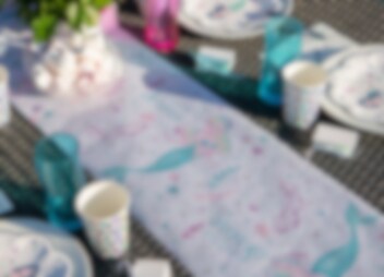 Schaffen Sie mit diesem Tischläufer mit Motiven von großen und kleinen Meerjungfrauen und anderen Dingen, die mit dem Meer zu tun haben, ein zauberhaftes Tischgedeck für die Meerjungfrauenparty. Passt perfekt zu unseren anderen Accessoires des gleichen Meerjungfrauen-Thema wie Tellern, Becher und Servietten.