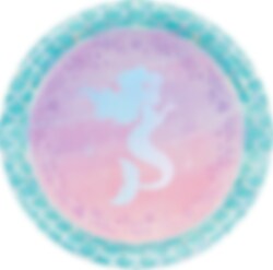 8 wunderschöne Pappteller mit einem eleganten Motiv einer Meerjungfrau in Silberfolie. Die Teller haben einen Durchmesser von etwa 23 cm.