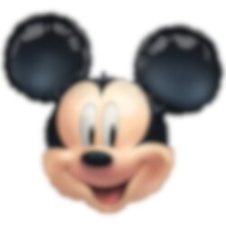 Folienballon mit der Darstellung von Mickey Maus. Eine ausgefallene Dekoration für die Party mit Mickey-Mouse-Motto. Der Ballon ist aufgeblasen etwa 63 x 55 cm groß und lässt sich am einfachsten mit Helium aufblasen.