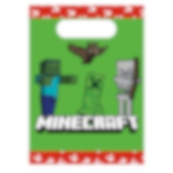 4 Geschenktüten mit coolen Motiven von Minecraft. Füllen Sie die Tüten mit Süßigkeiten und lustigen Überraschungen und verschenken Sie sie dann an die Gäste auf Ihrer Kinderparty.