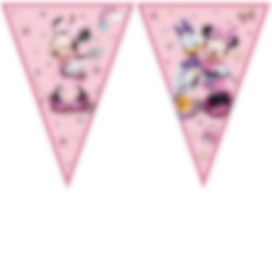 Wimpelkette aus Papier in Rosatönen und mit einem niedlichen Motiv von Minnie Maus und ihrer Freundin Daisy Duck. Eine schönee Dekoration, den man haben sollte, wenn eine Party Minnie Maus-Party ansteht.