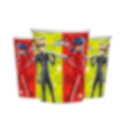 8 Pappbecher mit bunten Motiven von Miraculous Ladybug. Die Becher sind ca. 10 cm hoch und fassen 266 ml – perfekt als praktische und stilvolle Ergänzung für jede Tischdekoration.