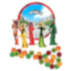 Tischdekoration mit sechs verschiedenen Pappfiguren aus der Miraculous Ladybug-Serie und einem Hintergrundbild von Paris. Das Set enthält außerdem größeres Konfetti für zusätzliche Effekte. Die Figuren sind ca. 23 cm hoch, das Hintergrundbild ca. 35 cm. Alles ist aus umweltfreundlicher, FSC-zertifizierter Pappe gefertigt.