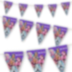 Bunte Wimpelkette aus Karton mit coolen Motiven von Monster High! Die perfekte Dekoration für den Kindergeburtstag. Die Girlande ist etwa 3 Meter lang, und jede einzelne Fahne ist ca. 24,5 cm hoch.