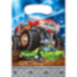 8 Geschenktüten aus Kunststoff mit coolem Monster Truck Motiv. Die Tüten haben eine Größe von 23 x 16 cm.