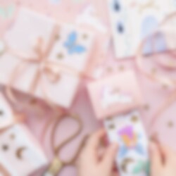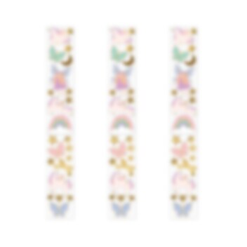 23 Sticker mit wunderschönen Einhornmotiven in 12 verschiedenen Designs. Die Sticker sind auf einer praktischen Rolle mit einer Länge von 126 cm angebracht.