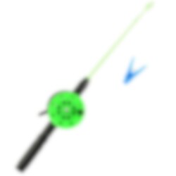 Die Angelrute ist etwa 47 cm lang und besteht aus Kunststoff. Im Lieferumfang sind neben der Rute auch eine Schnur und eine Wäscheklammer enthalten.