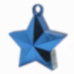 Sternförmiges, stylisches Ballongewicht in metallisch blauer Farbe, um die mit Helium aufgeblasenen Ballons am Boden zu halten. Das Ballongewicht wiegt etwa 170 Gramm und hat eine Kapazität von etwa 30 Latexballons oder 8-10 Zahlen- oder Buchstabenballons.