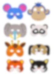 Niedliche Safari-Tiermasken aus weichem Schaumstoff in 8 verschiedenen Designs. Mit diesen Masken kannst du und deine Freunde euch auf der Party in lustige Tiere verwandeln! Sie sind bequem zu tragen und werden mit einem elastischen Band sicher am Kopf gehalten.