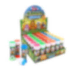 Seifenblasen, wo die Flasche Motive von süßen Safaritieren hat. Seifenblasen sind beliebt als Geschenk bei Kinderfesten und es macht Spaß, zusammen Bubble zu blasen. Der Preis ist pro Stück und die Flasche enthält 50 ml.