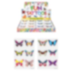 6 Tattoos mit schönen Motiven von verschiedenen Schmetterlingen. Eine lustige Kleinigkeit, die man als kleines Geschenk in der Geschenktüte oder Geschenkbox an seine Freunde verschenken kann. Bitte beachten Sie, dass die Tattoos auf zwei verschiedenen Bögen sind und einzeln und unsortiert verkauft werden.