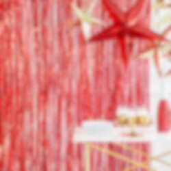 Foliertes Vorhang in glitzernder roter Farbe. Eine schöne Dekoration zum Aufhängen an der Tür oder an der Wand für eine Party jeglicher Art. Der Vorhang ist etwa 90 x 250 cm groß. Bitte beachte, dass Klebeband oder ähnliches zum Befestigen der Dekoration nicht im Lieferumfang enthalten ist.
