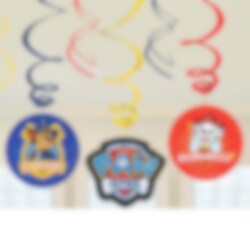 Hängende Dekorationen mit niedlichen Motiven der Hunde im Paw-Patrol-Design. Dekorieren Sie damit den Partyraum und schaffen Sie eine fröhliche Atmosphäre.