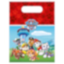 6 Geschenktüten mit Motiven der beliebten Hunde aus der Fernsehserie Paw Patrol. Füllen Sie die Tüten mit Süßigkeiten und kleinen Spielsachen, um sie den Gästen bei der Paw-Patrol-Mottoparty zu schenken.