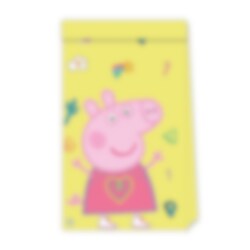 4 Geschenktüten aus Papier mit einem niedlichen Motiv von Peppa Wutz. Ideal zum Befüllen mit Süßigkeiten, kleinen Spielzeugen oder Überraschungen, die die Kinder nach der Feier mit nach Hause nehmen können.