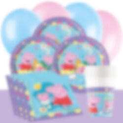 Mit einem fertigen Partyset lässt sich eine Feier mit fröhlichen Kindern, Spielen und viel Spaß schnell und unkompliziert organisieren. Ergänzend passen Geschenktüten, Geschenkboxen, Süßigkeiten, kleine Spielzeuge und weitere Peppa Wutz-Dekorationen ideal dazu.