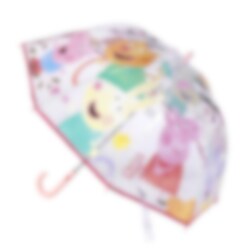 Der Regenschirm hat einen Durchmesser von ca. 71 cm und besteht aus PoE und Fiberglas. Er hat 8 Streben und öffnet manuell. Der Regenschirm hat ein schönes Design mit Peppa Wutz als Motiv und macht regnerische Tage spaßiger für Ihr Kind.