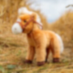 Süßes Kuscheltier in Form eines hellbraunen Pferdes, das ein perfektes Spielzeug für alle pferdeverrückten Kinder wird. Das Pferd ist naturgetreu und perfekt als Geschenk.