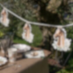 Girlande mit Pferdemotiven. Stilvoll zum Aufhängen im Raum, wenn es Zeit für eine Party ist. Die Girlande ist 5 Meter lang und bildet insgesamt 10 Pferde ab. Diese sind 16,7 x 20 cm groß.