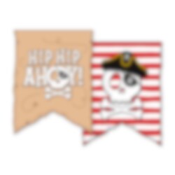Dekorieren Sie die Piratenparty mit dieser festlichen Girlande im klassischen Piraten-Design. Die dekorativen Flaggen zeigen Motive mit dem Text "Hip Hip Ahoy!", Totenkopf, Piratenhut und roten Streifen, was die Girlande zu einem verspielten Detail macht, das schnell die richtige Stimmung auf Ihrer Feier schafft.