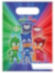6 Geschenktüten mit schönem Motiv von Owlette, Catboy und Gecko von PJ Masks. Füllen Sie die Tüten mit guten Süßigkeiten und etwas Spielzeug und geben Sie sie dann während der Party an die Gäste.