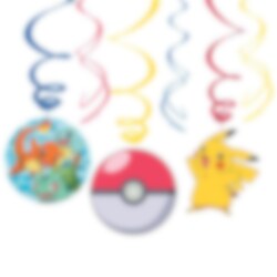 6 Hängedekorationen mit verschiedenen coolen Motiven von Pokémon. Hängen Sie diese im Partyraum auf, um eine lustige und fröhliche Atmosphäre zu schaffen.