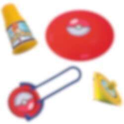 24 kleine Spielzeuge mit coolen Motiven aus Pokémon. Verpacken Sie einige Spielzeuge in die Geschenktüte oder Geschenkbox, um sie dann während der Kinderparty an die Gäste zu verteilen. Die Packung enthält 6 Disc-Shooters, 6 Frisbees, 6 Drehkreisel und 6 Trillerpfeifen.